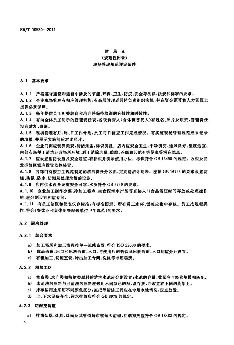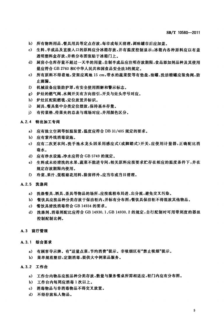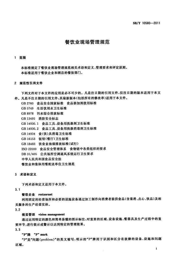 SB/T 10580-2011 餐飲業(yè)現場管理規(guī)范