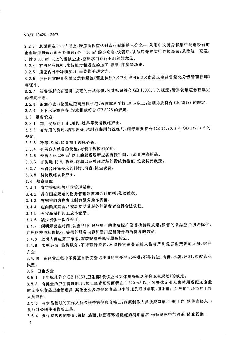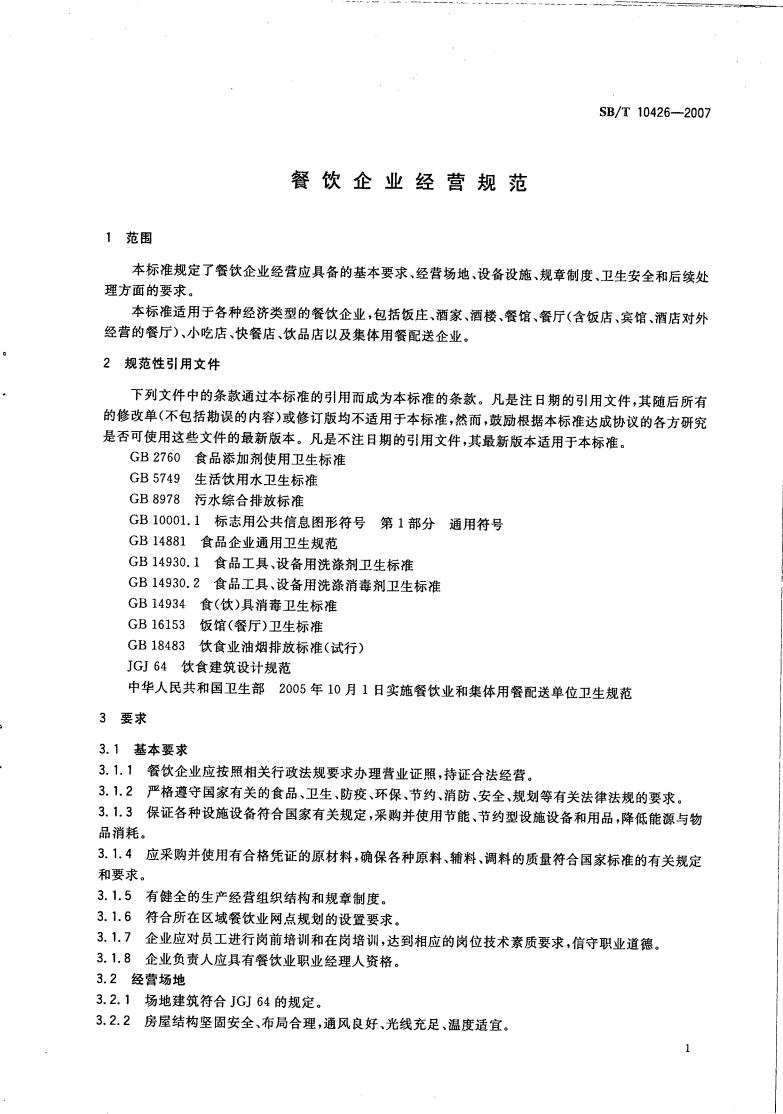 SB/T 10426-2007 餐飲企業(yè)經(jīng)營規(guī)范
