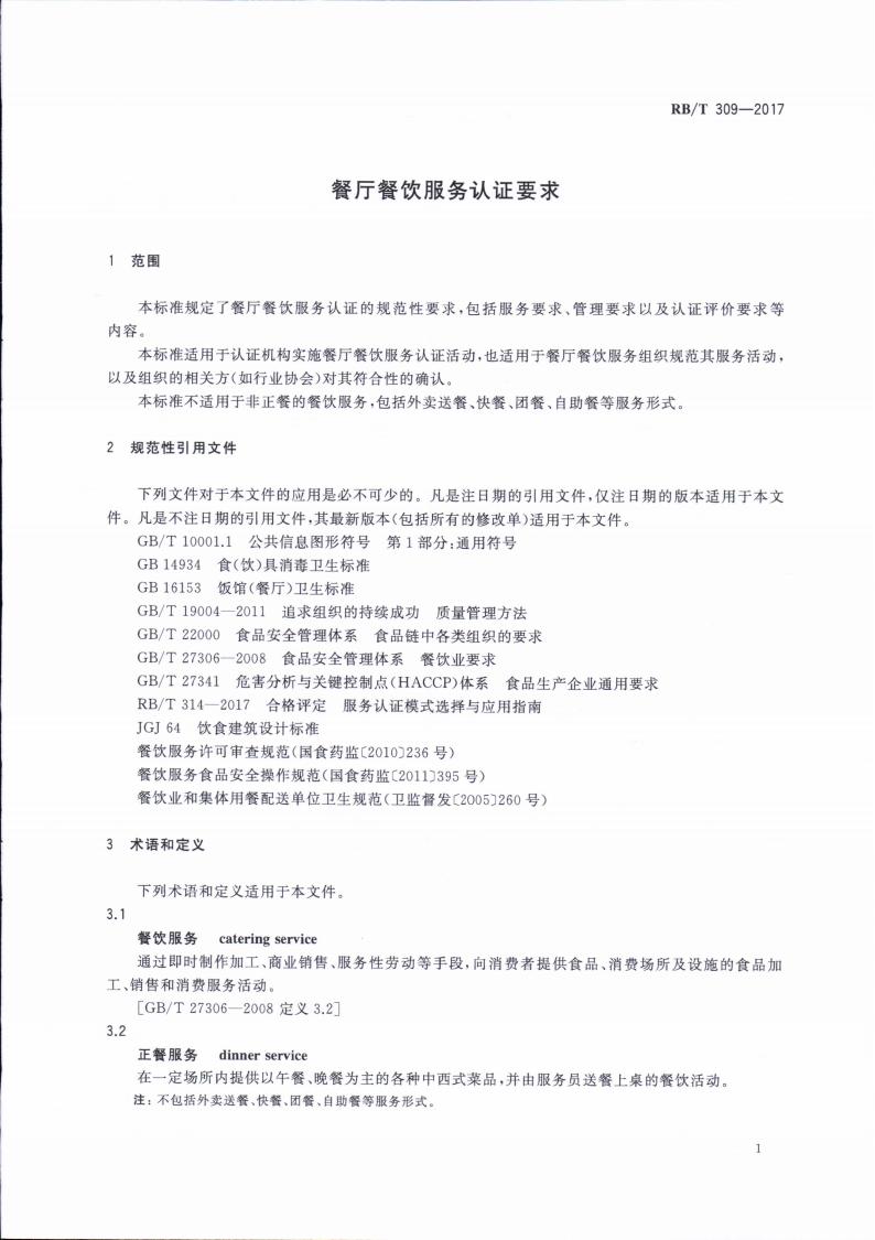 RB/T 309-2017 餐飲企業(yè)質(zhì)量評(píng)估體系
