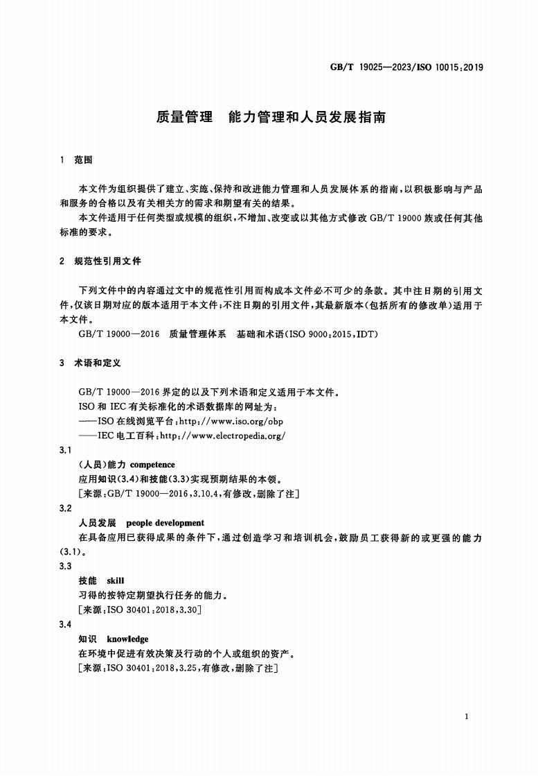 GB/T 19025-2023 質(zhì)量管理 能力管理和人員發(fā)展指南