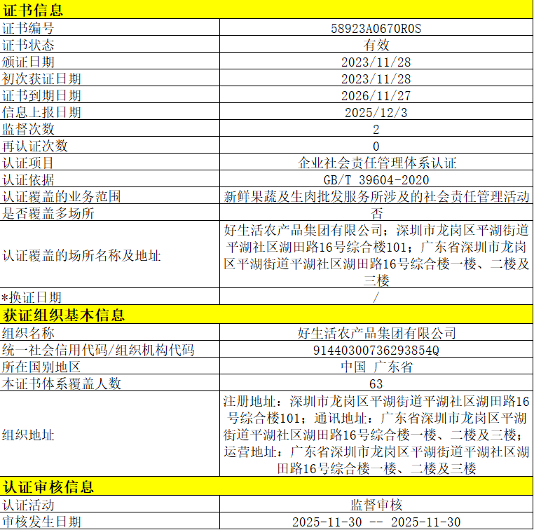 好生活農(nóng)產(chǎn)品集團(tuán)有限公司 58923A0670R0S