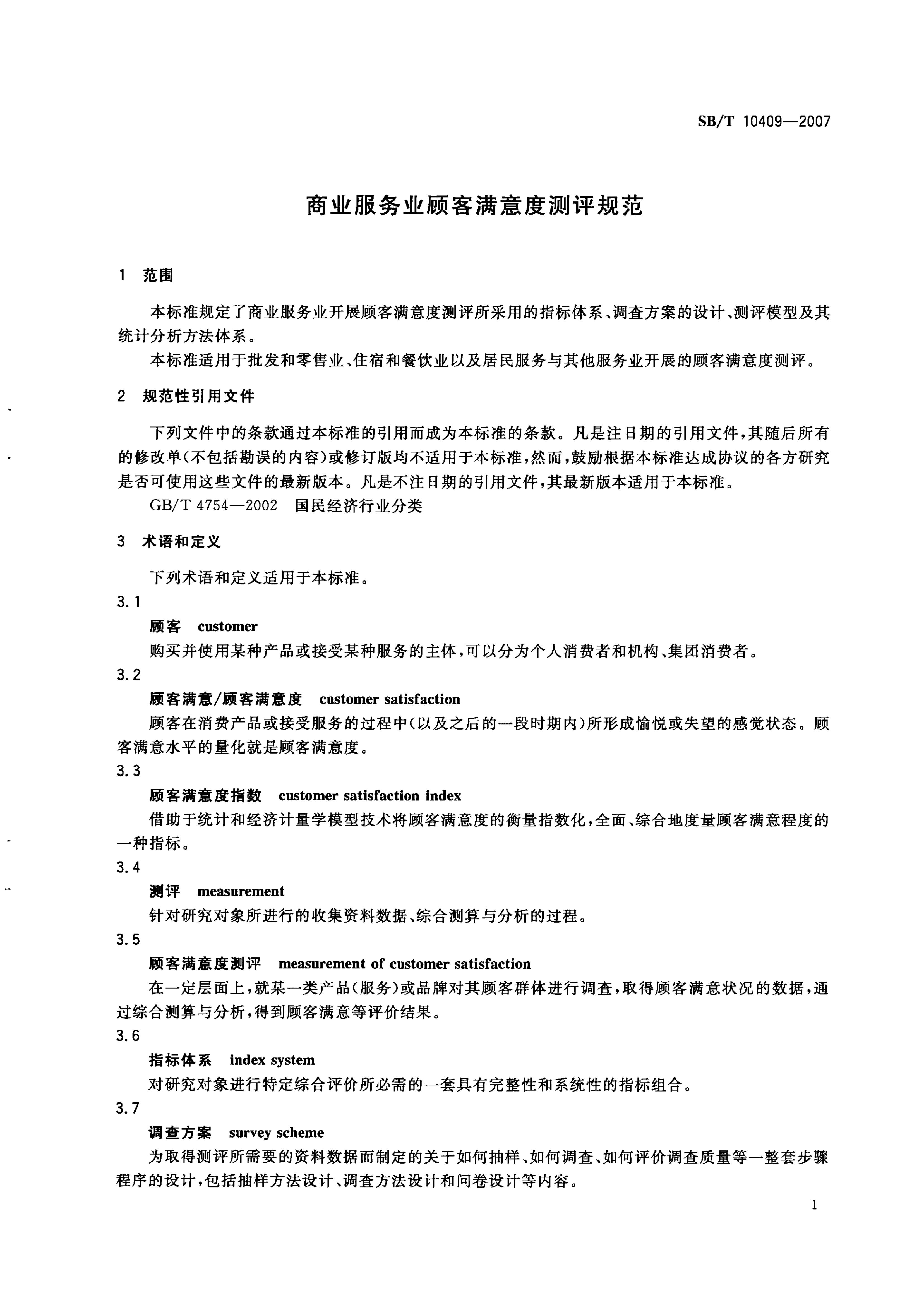 SB/T 10409-2007 商業(yè)服務業(yè)顧客滿意度測評規(guī)范
