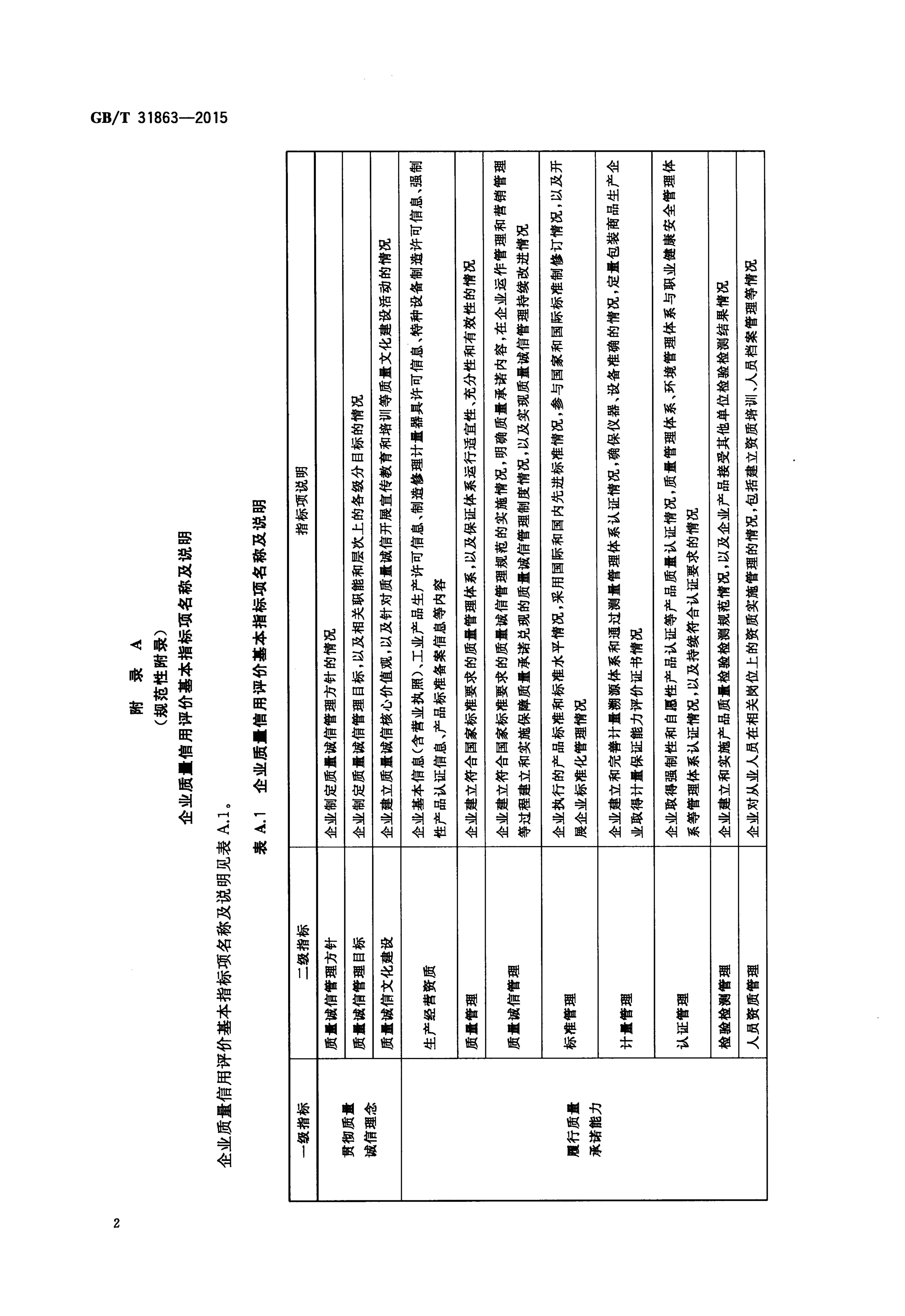 GB/T 31863-2015 企業(yè)質(zhì)量信用評價指標(biāo)