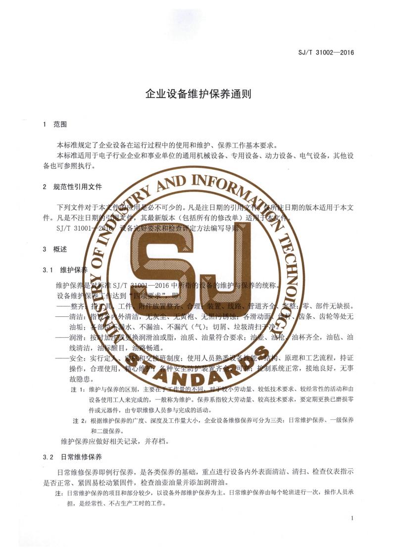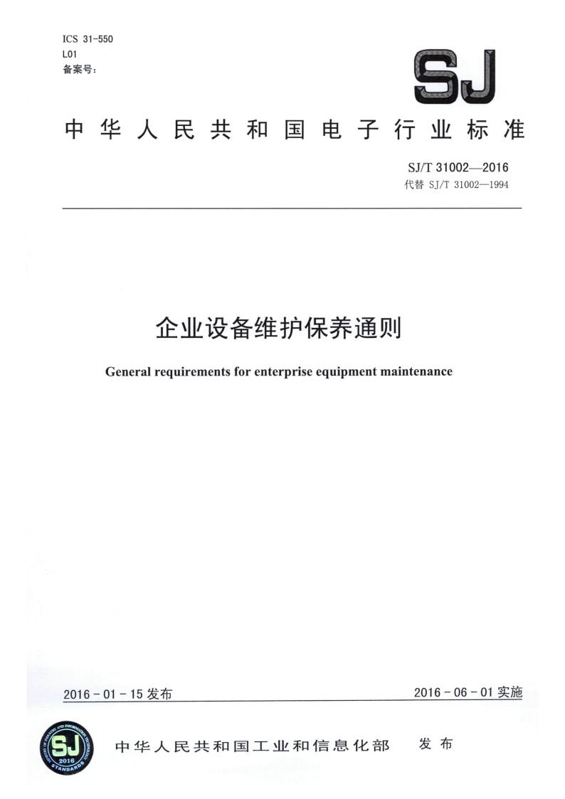 SJ/T 31002-2016 企業(yè)設(shè)備維護(hù)保養(yǎng)通則