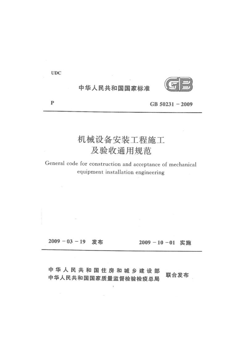 GB 50231-2009 機械設備安裝工程施工及驗收通用規(guī)范