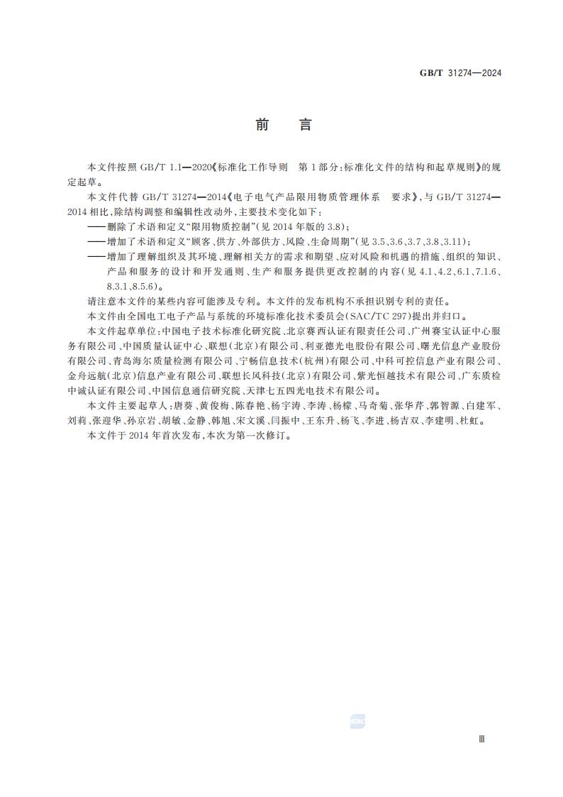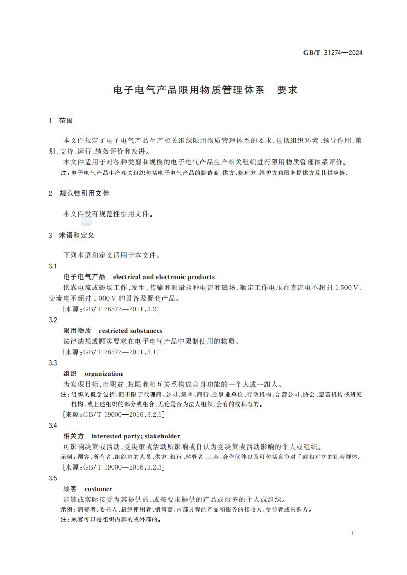 GB/T 31274-2024 電子電氣產(chǎn)品限用物質(zhì)管理體系要求