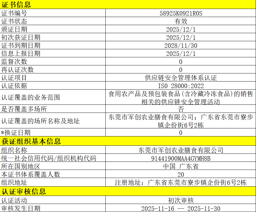 東莞市軍創(chuàng)農(nóng)業(yè)膳食有限公司 58925K0921R0S