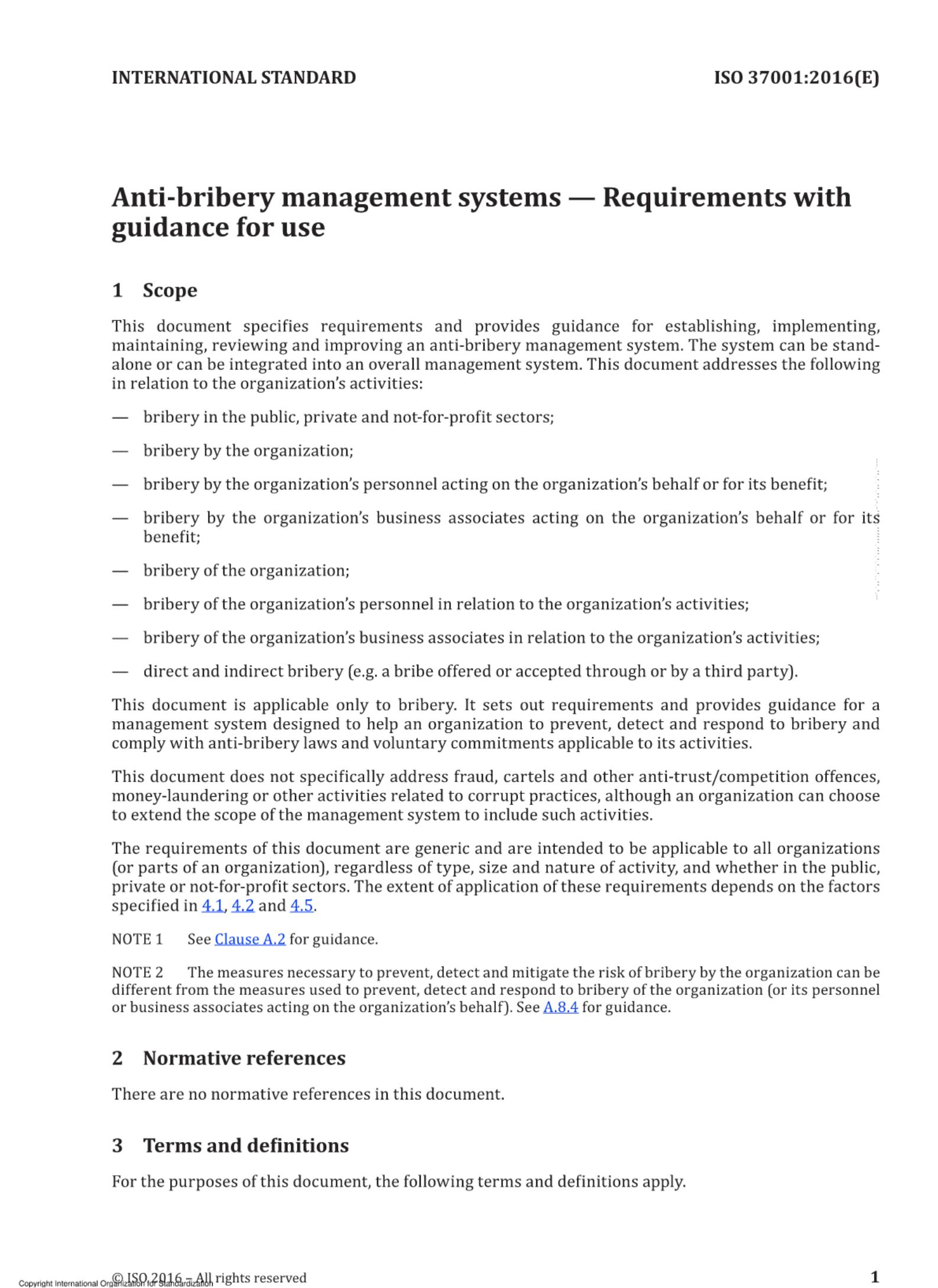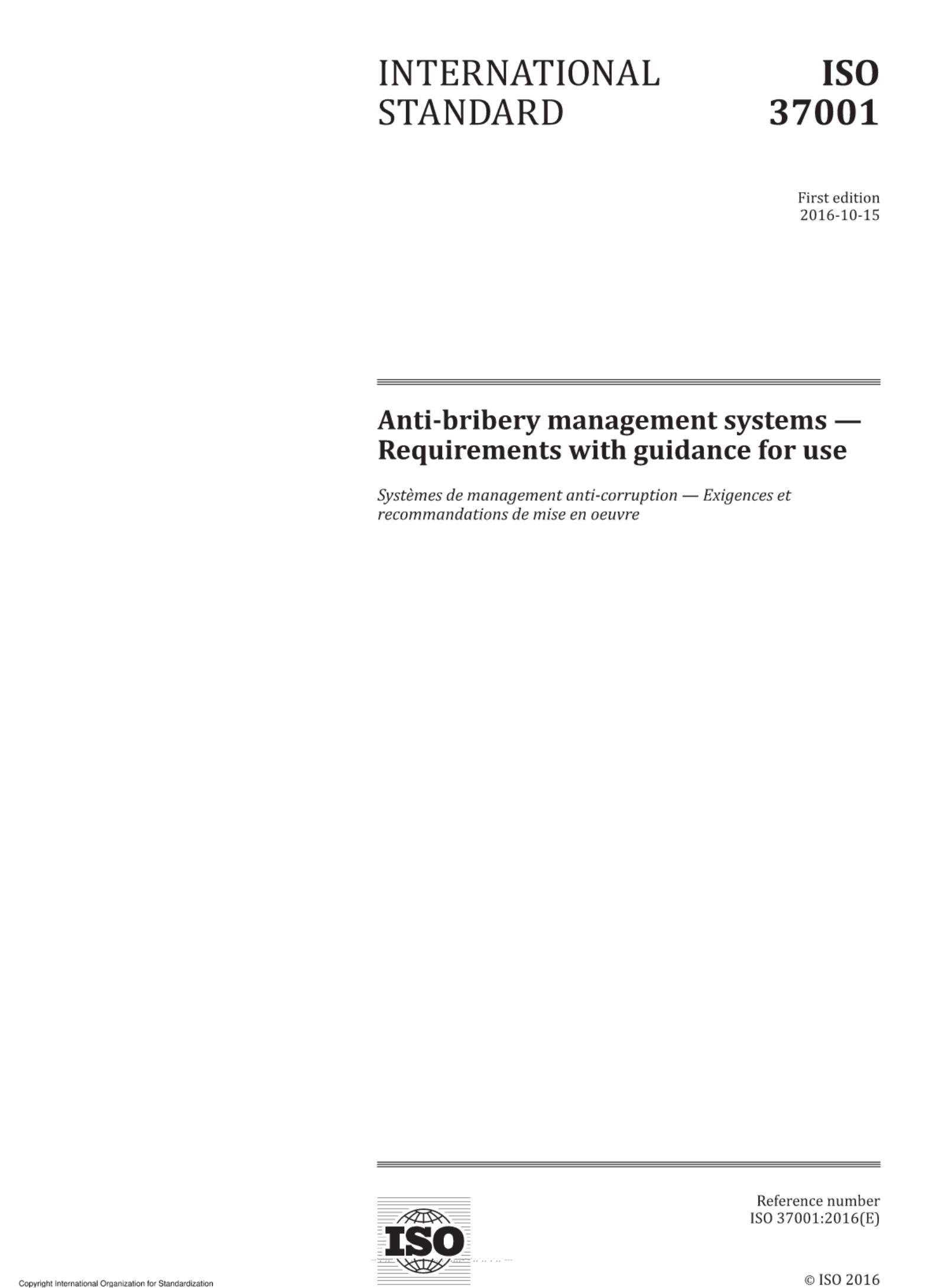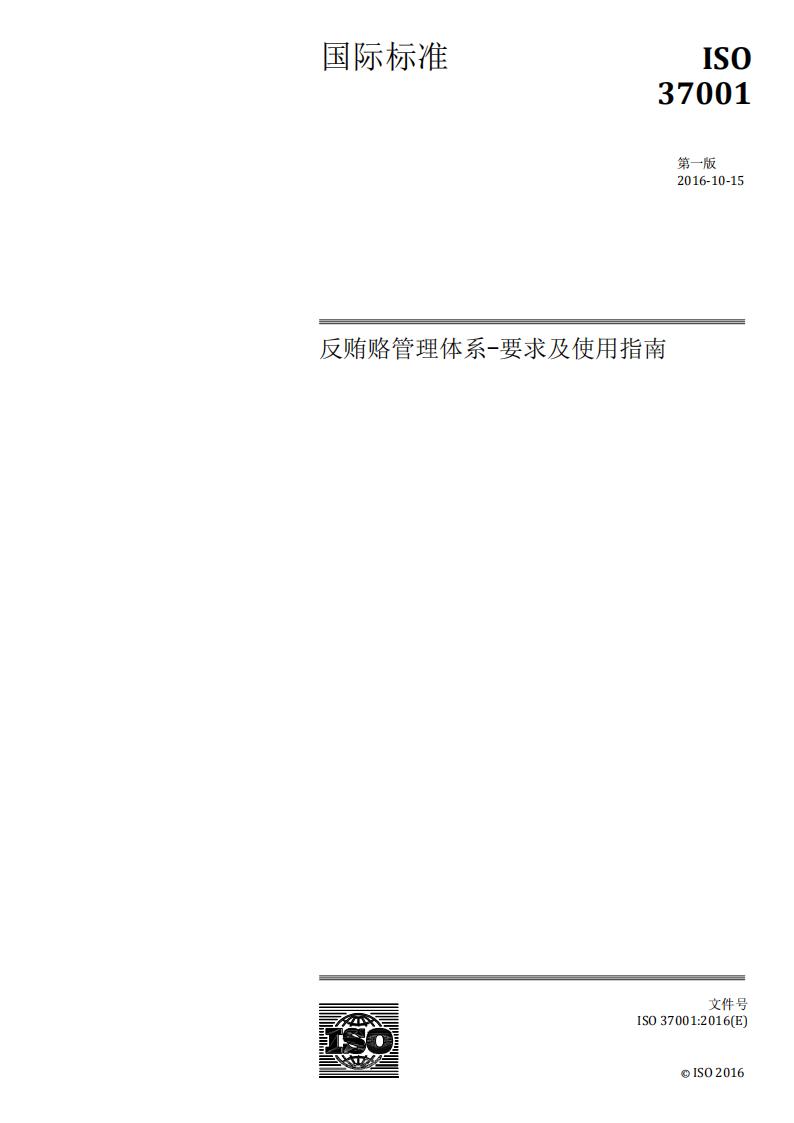 IS0 37001-2016反賄賂管理體系要求及使用指南