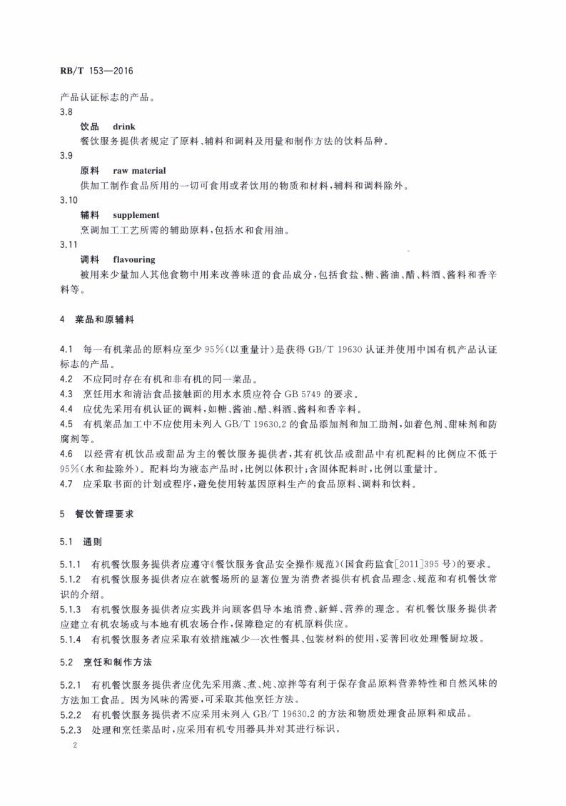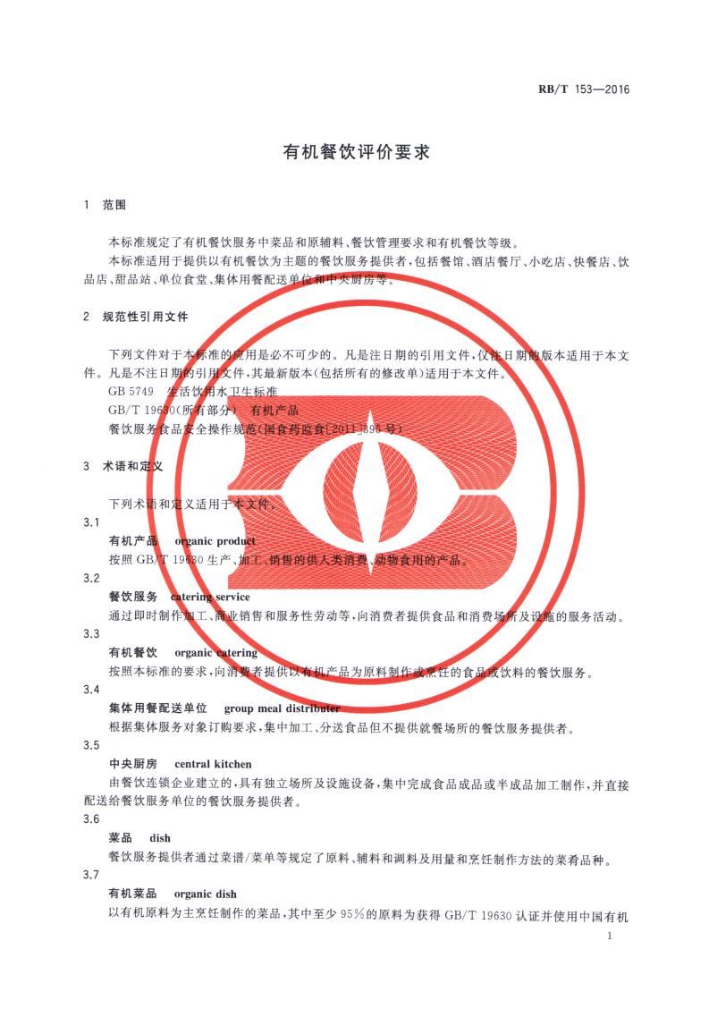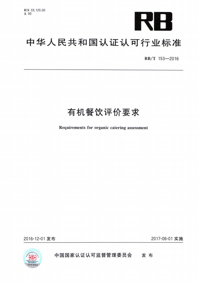 RB/T 153-2016 有機(jī)餐飲評價要求