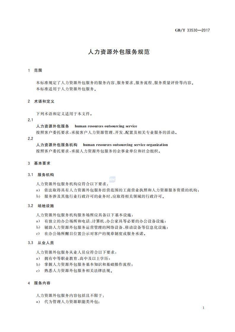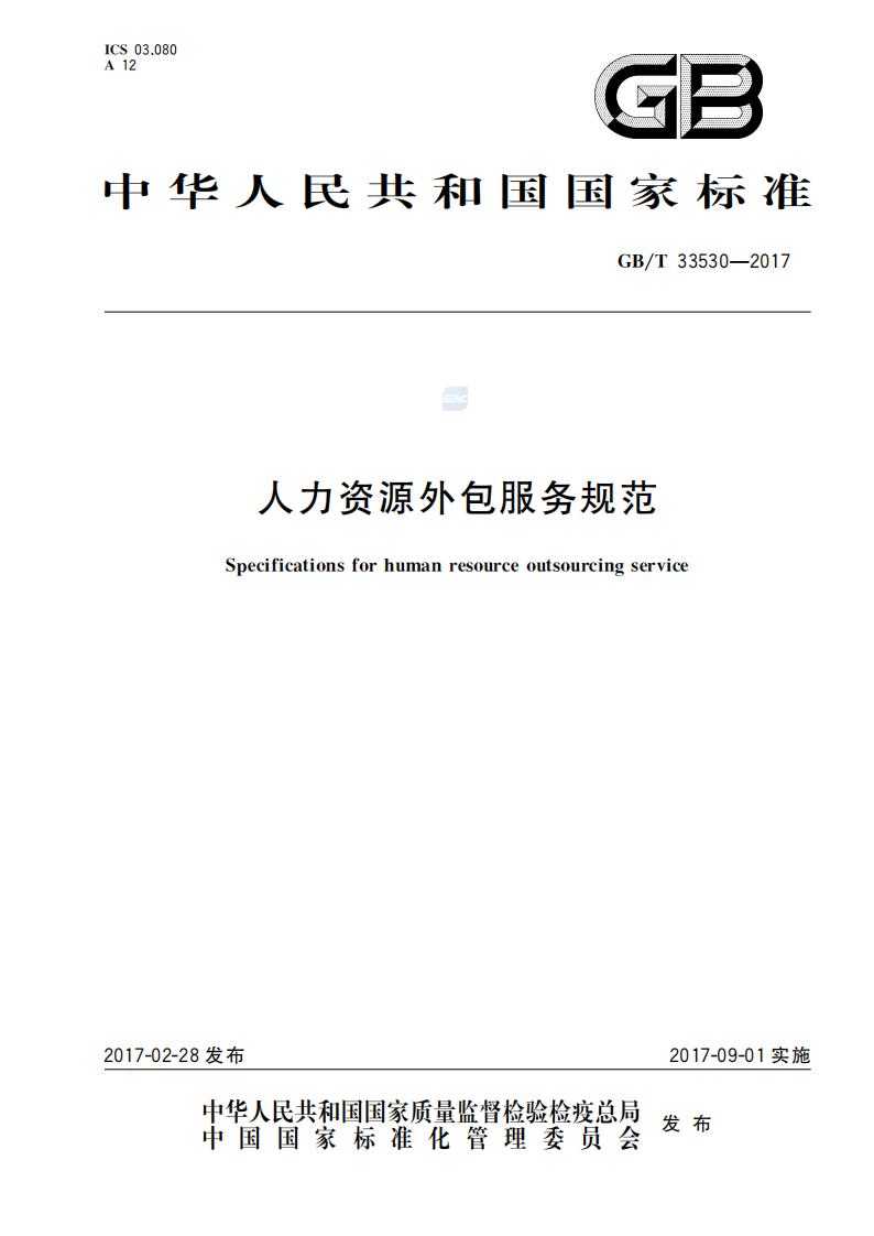 GB/T 33530-2017 人力資源外包服務(wù)規(guī)范