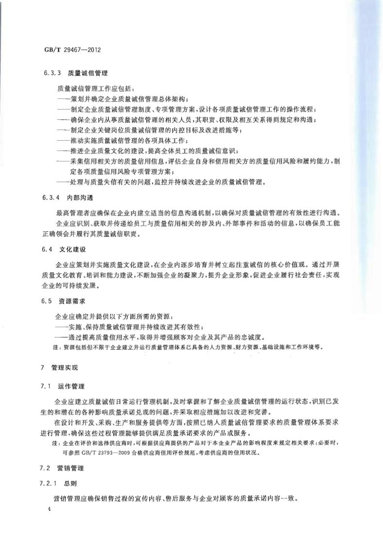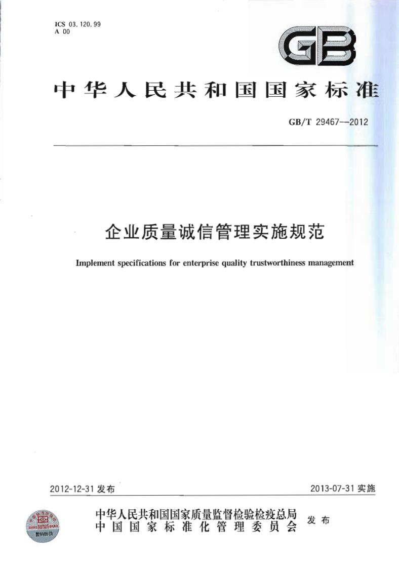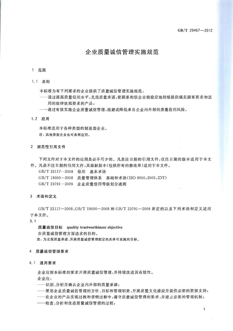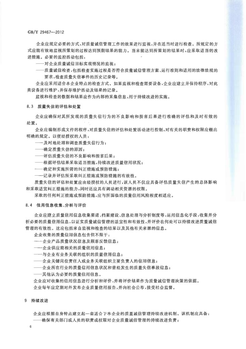 GB/T 29467-2012 企業(yè)質(zhì)量誠信管理實施規(guī)范