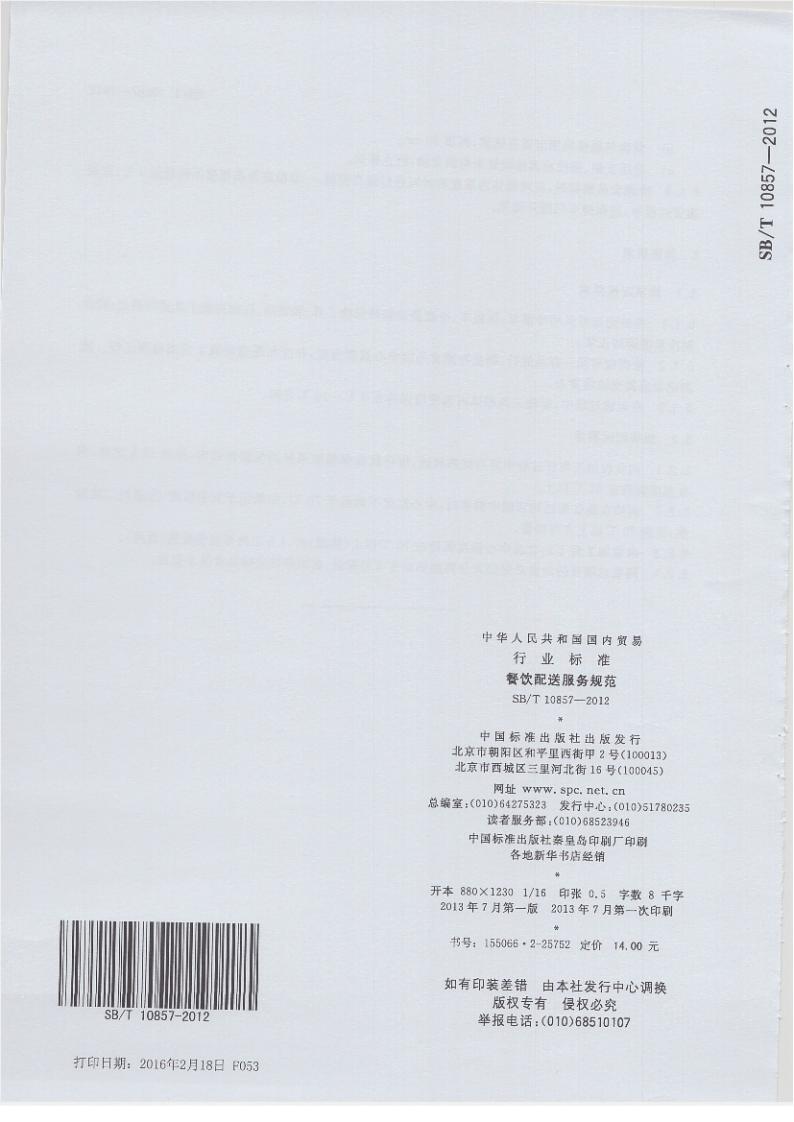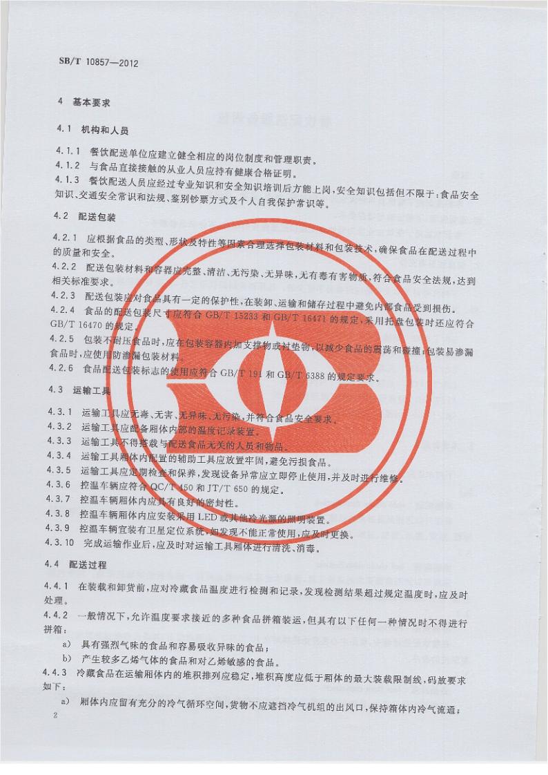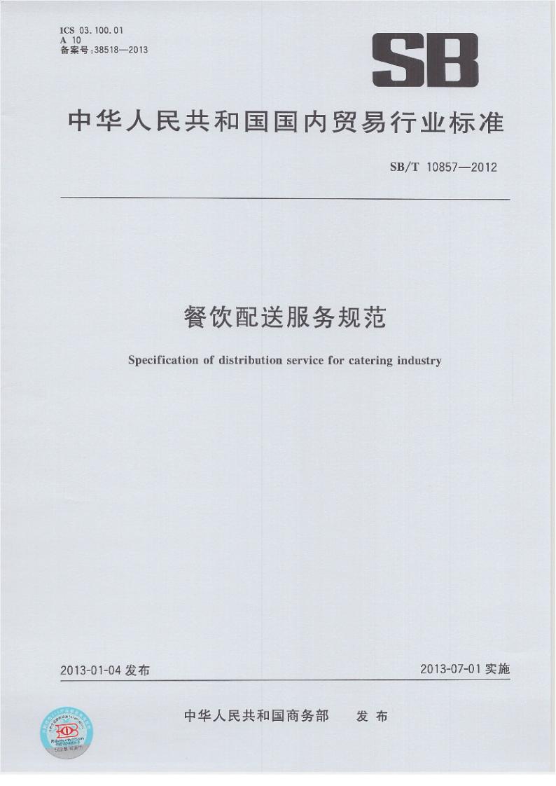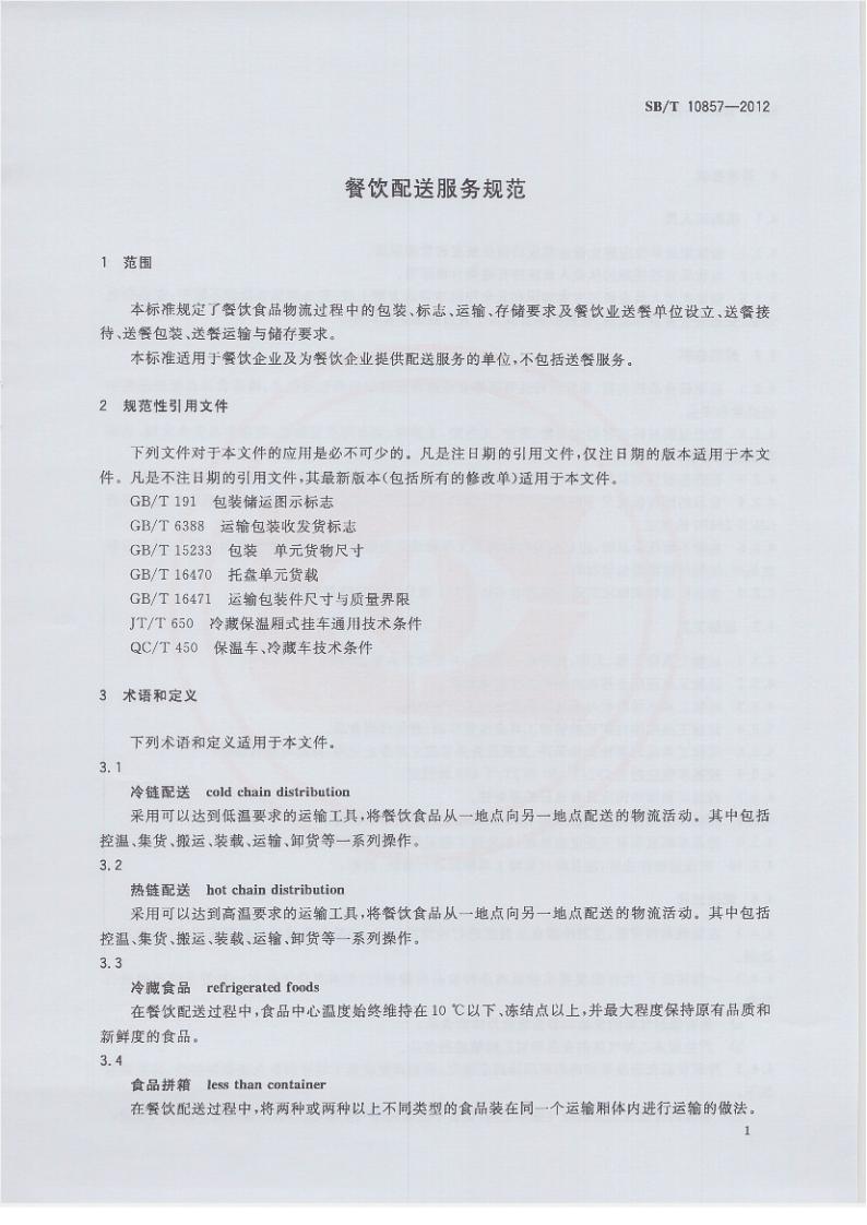 SB/T 10857-2012 餐飲配送服務(wù)規(guī)范