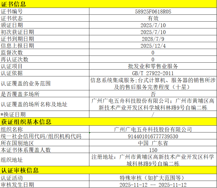 廣州廣電五舟科技股份有限公司 58925F0618R0S