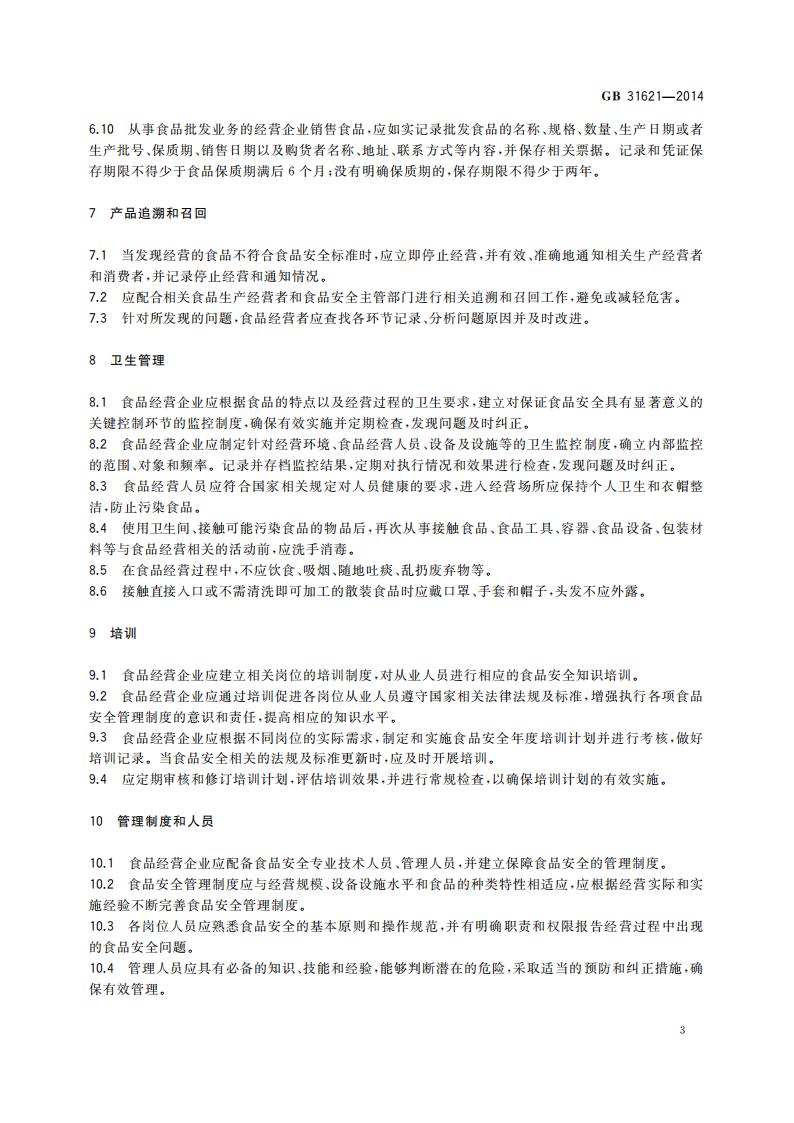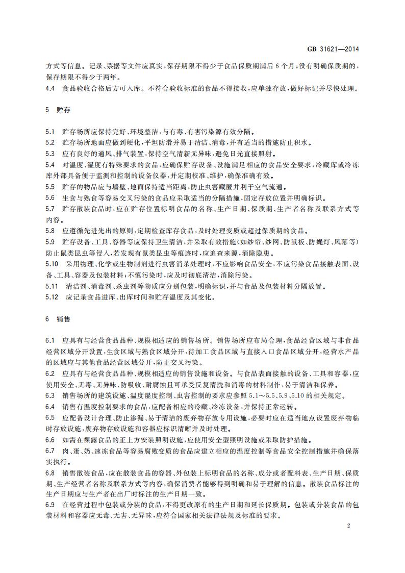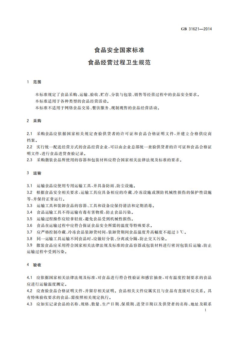 GB 31621-2014 食品經(jīng)營過程衛(wèi)生規(guī)范